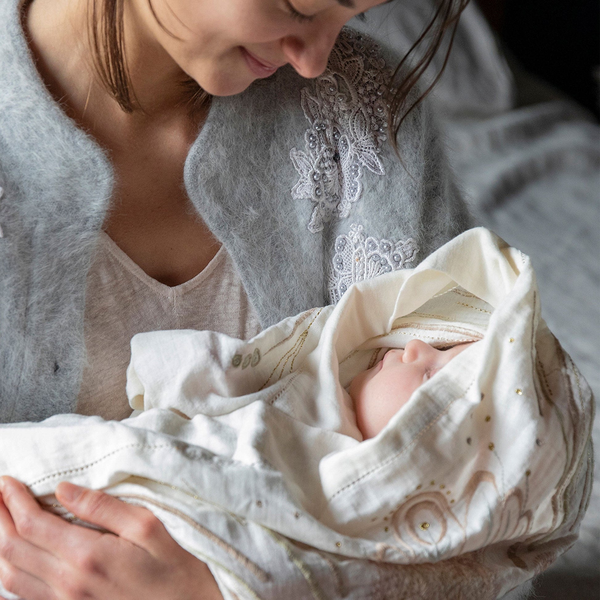 This one-of-a-kind product is made by hand in ceremony with sacred intentions of pure love to nurture newborns. Each blanket is uniquely different and contains the healing properties which are most appropriate for the recipient. Birth Blankets are incredibly healing for newborns who experiencing transition. A timeless gift to be treasured a lifelong, with the ability to add your own personal touch. Hey make wonderful gifts for our loved ones and helps intuitively drawn to their healing energies. Use it as a Birth Blanket or as a decoration on your wall. Available in the colors Chalk Ivory, Blossom Pink and Sky Blue, made of 100% extra soft cotton.