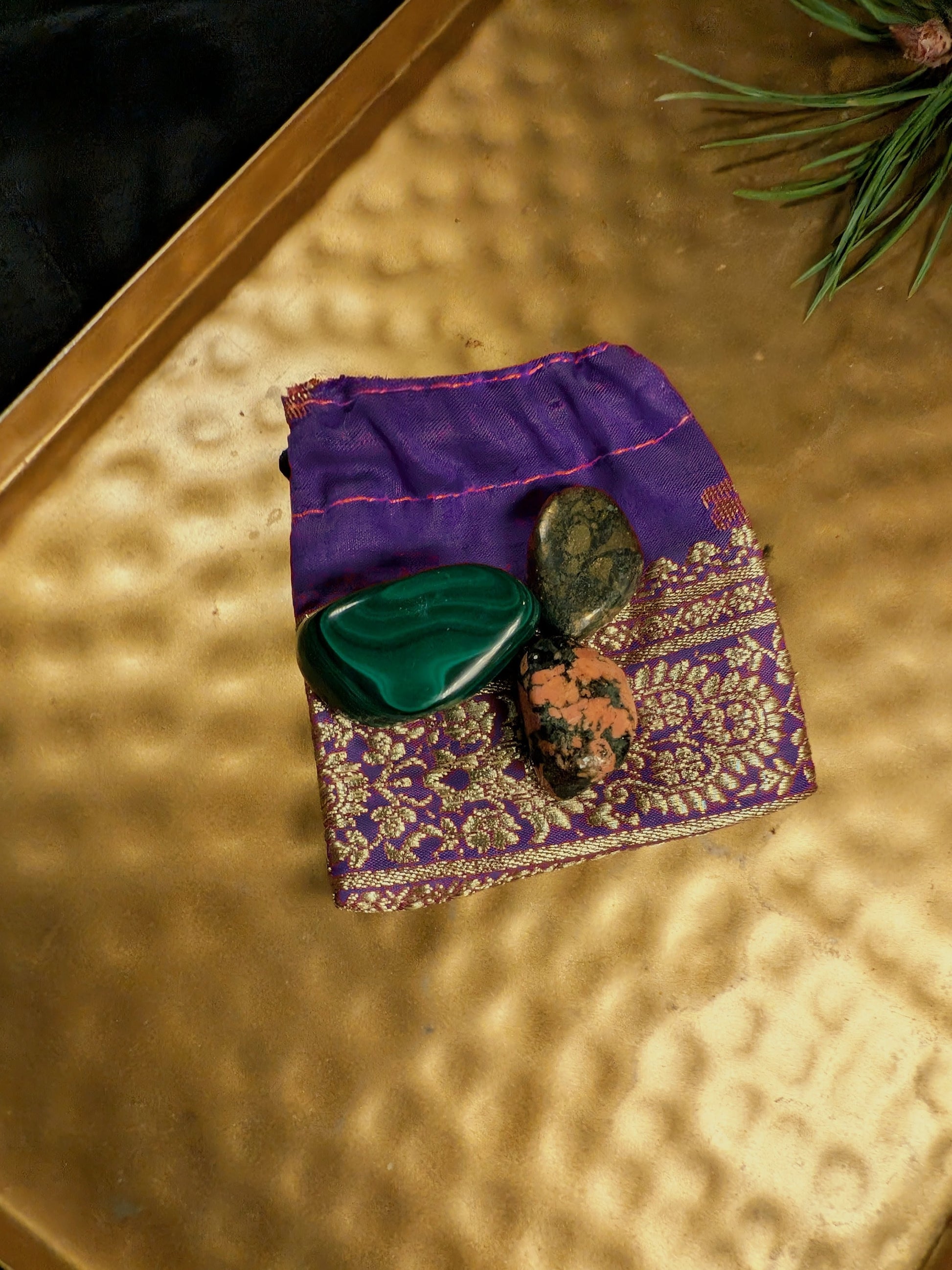 This combination of stones was chosen with that in mind. Because you following your intuition, your heart and being protected from any negative energy is what we want to see when you are in the precious creation and abundance energy of growth and change.