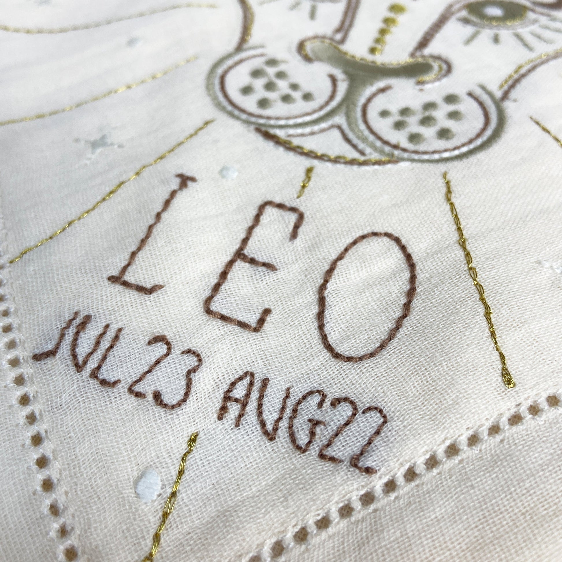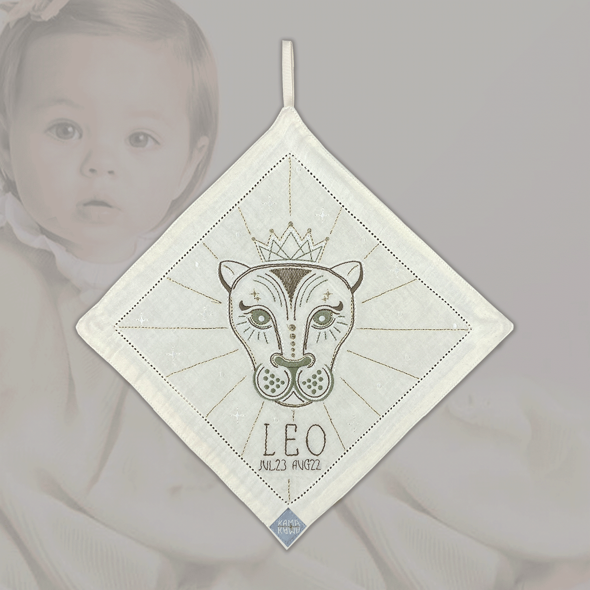 Birth Tile’s serves as a tangible gate to our higher consciousness. The refined embroidered Zodiac icons invites you to connect to the inner wisdom of your star sign soul. You might find that the sacred Star signs symbols hold deep spiritual significance that speaks to your higher self. Let yourself be enchanted by the unique “glow in the dark” and let it become a gateway to the mystical domain, where guidance and wisdom await. A timeless gift to be treasured a lifelong. Use it as a decoration on your wall, or as a unique cuddle cloth for your little loved one. Made of 100% super soft cotton.