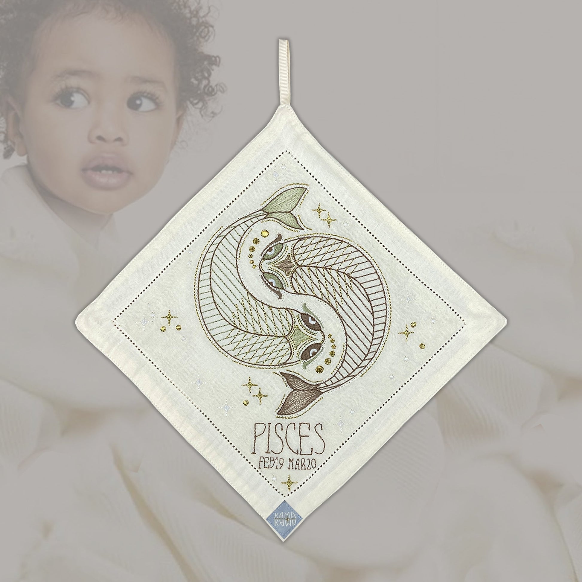 Birth Tile’s serves as a tangible gate to our higher consciousness. The refined embroidered Zodiac icons invites you to connect to the inner wisdom of your star sign soul. You might find that the sacred Star signs symbols hold deep spiritual significance that speaks to your higher self. Let yourself be enchanted by the unique “glow in the dark” and let it become a gateway to the mystical domain, where guidance and wisdom await. A timeless gift to be treasured a lifelong. Use it as a decoration on your wall, or as a unique cuddle cloth for your little loved one. Made of 100% super soft cotton.