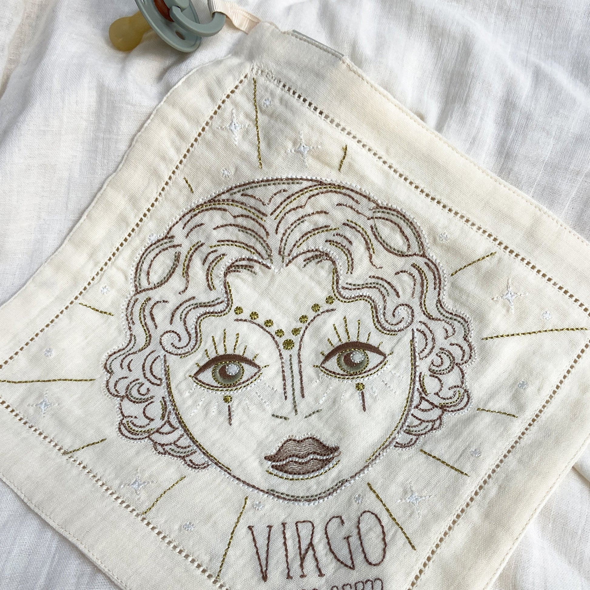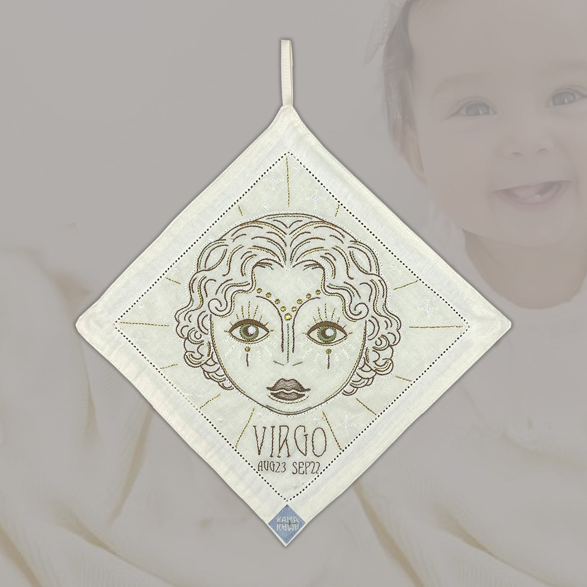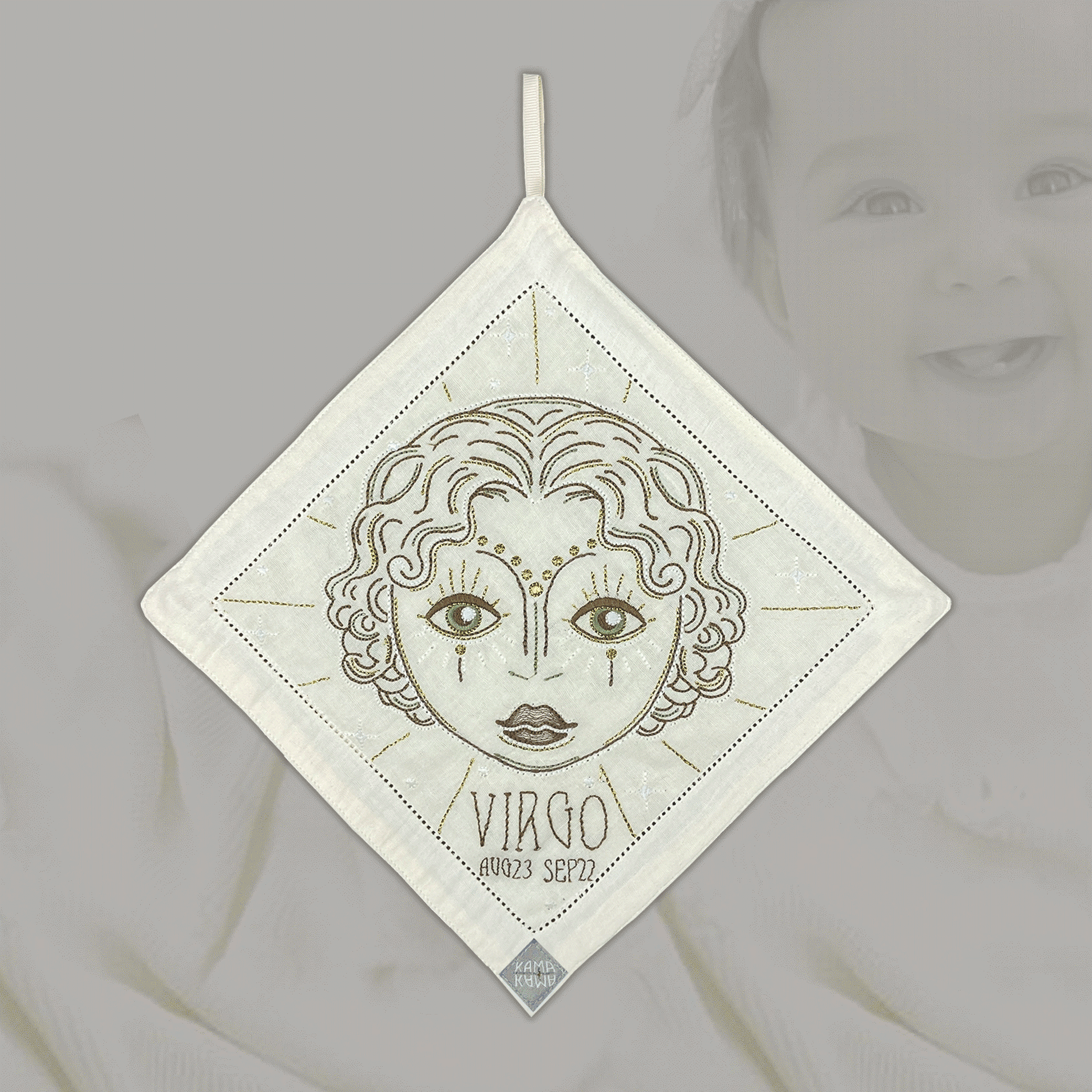 Birth Tile’s serves as a tangible gate to our higher consciousness. The refined embroidered Zodiac icons invites you to connect to the inner wisdom of your star sign soul. You might find that the sacred Star signs symbols hold deep spiritual significance that speaks to your higher self. Let yourself be enchanted by the unique “glow in the dark” and let it become a gateway to the mystical domain, where guidance and wisdom await. A timeless gift to be treasured a lifelong. Use it as a decoration on your wall, or as a unique cuddle cloth for your little loved one. Made of 100% super soft cotton.